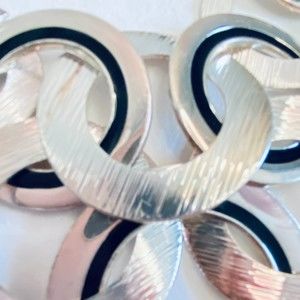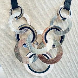 NRT Bib Choker Necklace Silver Tone Intertwined Rings And Ribbons