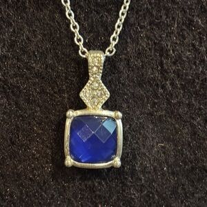 NRT Signed Silver Tone Blue Rhinestone Pendant Necklace & Earrings Jewelry Set