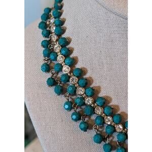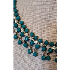 NRT for Avon Green/Blue Dangle Rhinestone Collar Statement Necklace