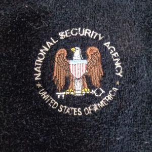This is a new NATIONAL SECURITY AGENCY (NSA) black golf towel. On the front is embroidered with the NSA emblem.