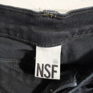 NSF Jeans Denim 26 Skinny Slim Distressed Black Dark Blue Navy Wash Raw Hem