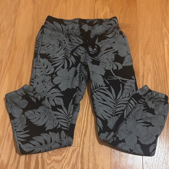 These NSF Sayde Gray Floral French Terry Sweatpants are designed for petite women with a waist size of 24 inches. They feature a pull-on closure and have a comfortable ankle length inseam of 24.5 inches. The pants are made from French terry fabric and showcase a stylish floral pattern in gray. Perfect for activewear, these pants provide both comfort and a trendy look. Measurement from top of waist band to bottom of ankle is 32". No flaws, great condition.