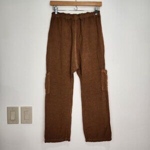 The NSF Shailey Paperbag Waist Pant in XXS Safari Brown is a stylish and comfortable addition to any woman's wardrobe. These slouchy drop crotch pants feature a high-rise waist with an elastic waistband for a relaxed fit. Made from a breathable rayon and linen blend, these straight leg pants are perfect for casual occasions in the summer, fall, or spring. Additionally, the crop length and pockets add functionality to the bohemian-themed design, making them a versatile choice for everyday wear.