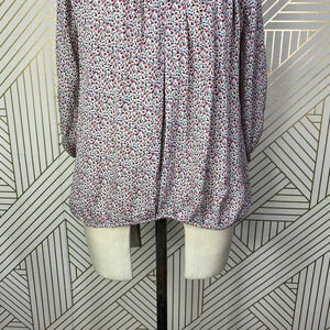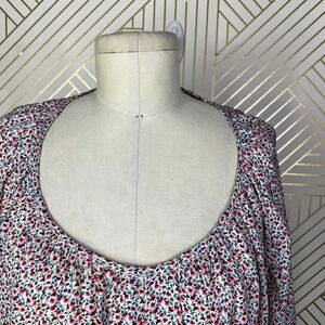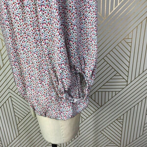 NSF Silk Floral Printed Balloon Sleeve Top Red Green Size US XS