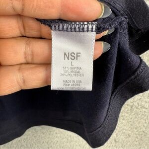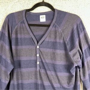 NSF Top Womens Large Blue Gray Stripe V-neck Henley Tee Casual Y2K