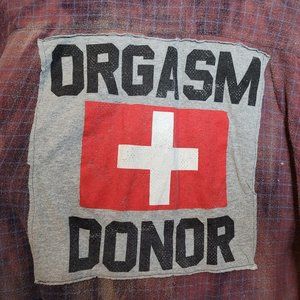 NSFW Orgasm Donor Flannel Shirt Upcycled Bleached Plaid Adult XL Tall