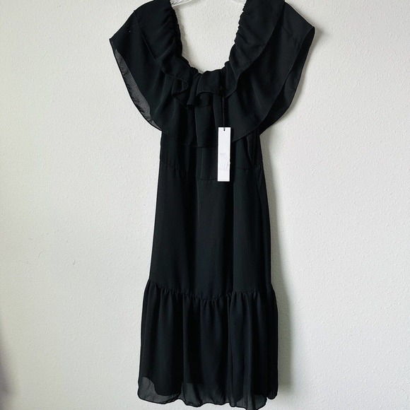 NSR Black Boho Flounce Off The Shoulder Dress Sz M NWT B-LB
