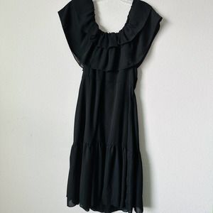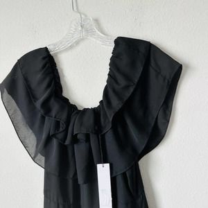 NSR Black Boho Flounce Off The Shoulder Dress Sz M NWT