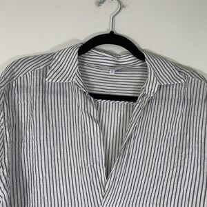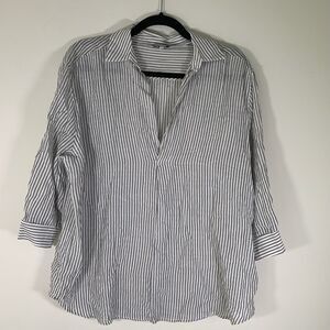 NSR Blouse Women’s Small Blue White Striped Collared 3/4 Sleeve Top