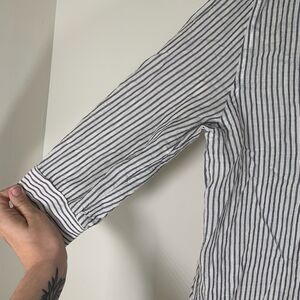 NSR Blouse Womens Small Blue White Striped Collared 3/4 Sleeve Top.