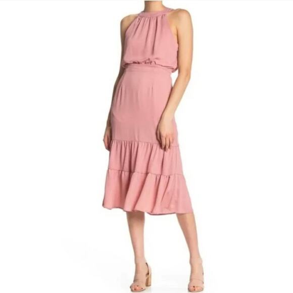 Fun flirty and feminine romantic dusty pink ruffle midi dress. New with tags no flaws