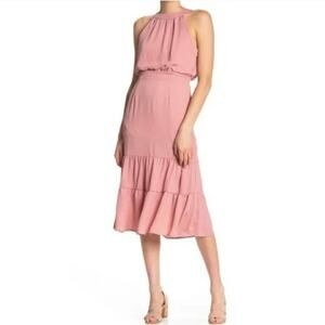 NSR Dorothy Tiered Ruffle Midi Dress Dusty Pink {T23}