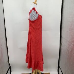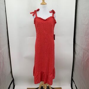 NSR DRESS WOMEN L LARGE PINK RED RUFFLE SWEETHEART NECK TIE STRAP MIDI NORDSTROM