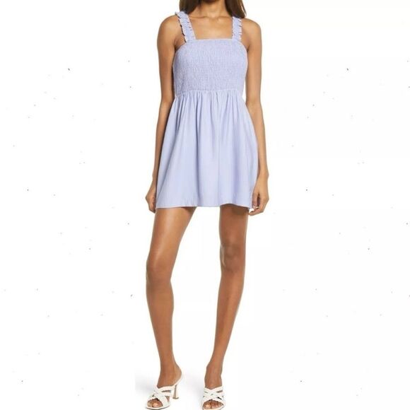 NSR Julia Sleeveless Smocked Ruffle Mini Dress Lavender Purple Size Medium