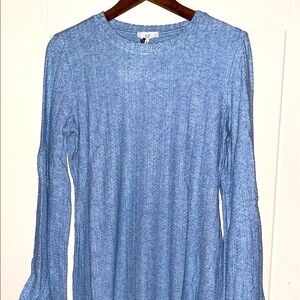 NSR Lucia Slit Ribbed Knit Jewel Neck Bell Sleeve Stretch Form Fit Mini Dress XL
