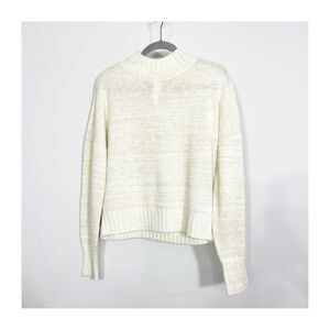 NSR Mock Neck Sweater Large Long Sleeve Cream Gold Sparkle Thread CT10514 New
