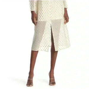 NSR NICOLA METALLIC DOT MIDI DRESS IN IVORY size large