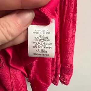 Hot pink, stretchy lace fabric. The perfect dress for a casual day with friends, or as a spring wedding guest! Features include: