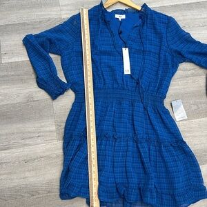 NSR Nordstrom Blue Plaid Smocked Waist Mini Dress - Size XL