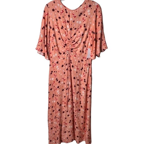 NSR PINK FLORA WHITEL PRINT MIDI WOMEN SHORT SLEEVE DRESS SIZE MEDIUM BRAND NEW