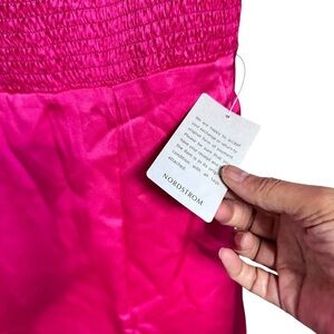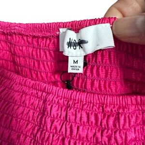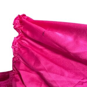 NSR Smocked Fuchsia Pink Party Dress Midi M Puff Sleeves Slit Satiny 3592 READ