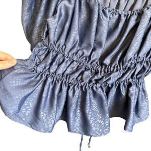 Y2K NSR Animal Print Satin Smocked Puff Sleeve Tie Front Off Shoulder Peplum Peasant Blouse New With Tags Size Small Blue