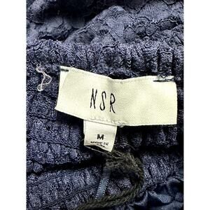 NSR Soft Lace Dress Hi-Low Hemline Puff Sleeves Fully Lined Navy Blue Medium NWT