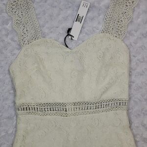 NSR Women Floral Crochet Lace Eyelet Sleeveless Sheath Mini Dress White Size Medium