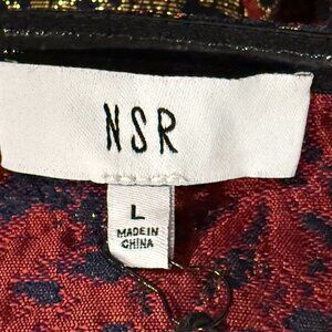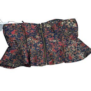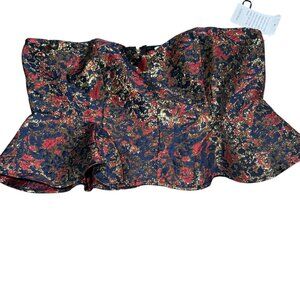 NSR Women Metallic Jacquard Strapless Peplum Top In Black/Red Large