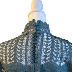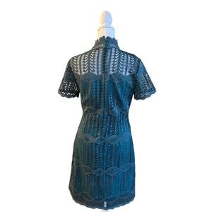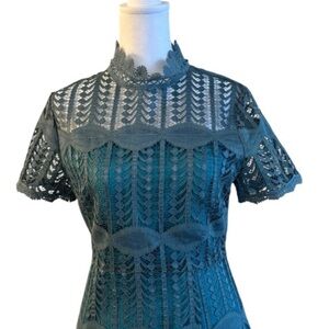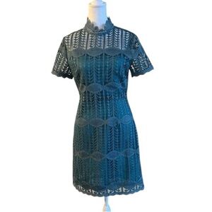 NSR Women’s High Neck Short Sleeve Embroidered Blue Dress Size Small