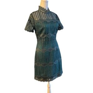 NSR Women’s High Neck Short Sleeve Embroidered Teal Dress