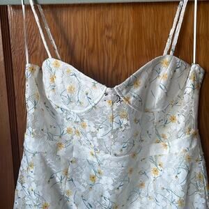 Spring, dress, floral, yellow, sheer, lace, NSR, urban outfitters style, romantic, date night