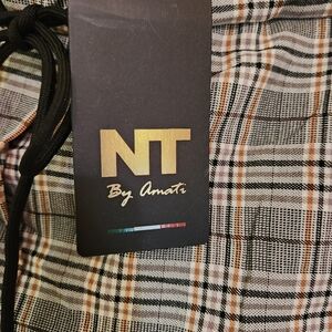 NT By Amati Black Yellow Plaid Elastic Waist Pants Made In Italy NEW One Sz