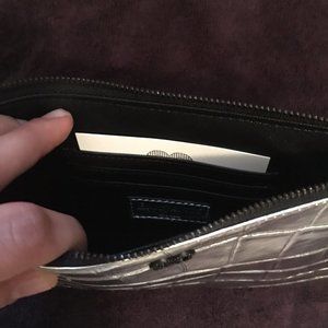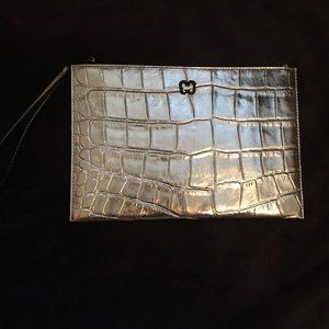 New with Tags Authentic Eric Javits Flat Zip Clutch in Silver. Has wrist strap and credit card slots.