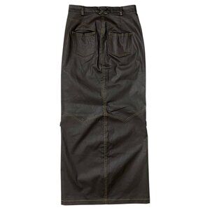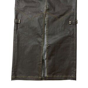 NTK Rodeo Jean Coated Denim Maxi Skirt Size 26 Brown Western Front Slit