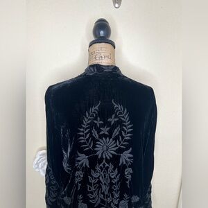 Johnny Was JW Los Angeles Black Velvet Embroidered Cardigan – Size M