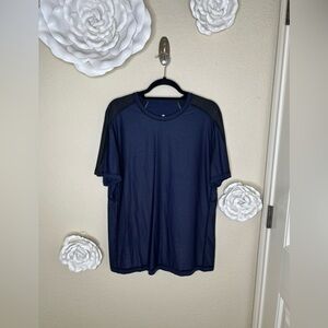 NTM: Lululemon Blue & Black Surge Float Running Tech Short Sleeve Shirt Sz XL
