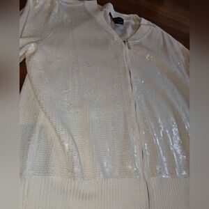 NTW White House Black Market White Sequence Zipped Cardigan. Size Medium