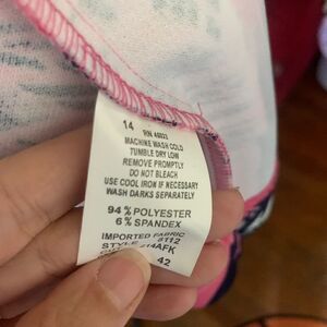 N Touch pink and blue jacket with pockets and shoulder pads. Size 14. Three quarter length sleeves.