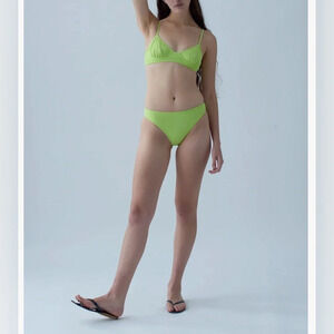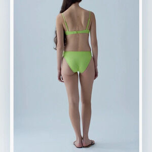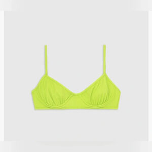 The Pluto Top is a shirred demi-cup underwire style, with lightweight plastic wiring, adjustable straps and dyed-to-match lightweight hardware.