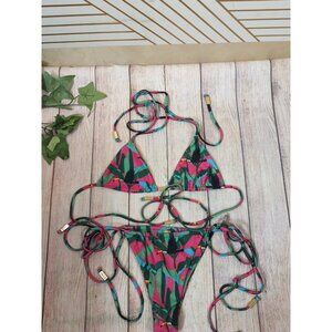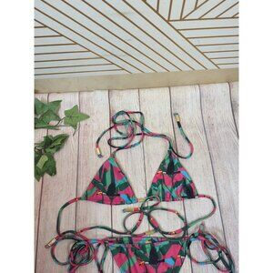 NUA VALENTINA Women's Tucano Rosa Bikini Tucan Print Tie Size S/M
