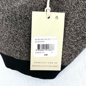 NUDE LUCY ACTIVE Knit Crop Top Womens Small Granite Black Shirt Workout NWT