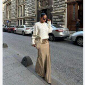 Nude champagne color Maxi skirt SATEEN SATIN