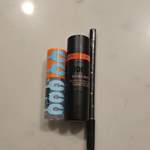 All brand new and never opened. Matte Picante color for nudestix (coral), clear with sparkles lip gloss, and Stella color lip liner.