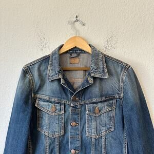 NUDIE JEANS Billy Jacket Blue Denim Cotton Trucker Grunge Moto Biker Y2K