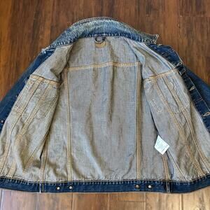 NUDIE JEANS Billy Jacket Mens M Blue Denim Cotton Trucker Grunge Moto Biker Y2K M3862