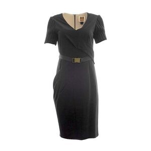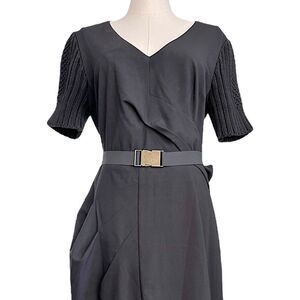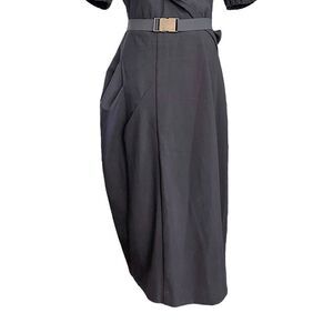 NUE BY SHANI Knit sleeve belted asymmetric Midi in Black Size 12
