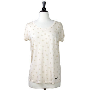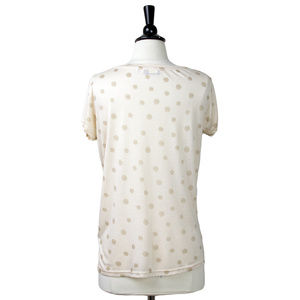 Pale blush short-sleeved tee with metallic dot print, round neckline in a lightweight fabric with relaxed fit.