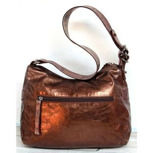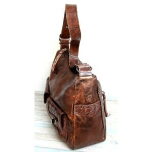 NUOVEDIVE Made in Italy BRONZE CROCO EMBOSSED BROWN GENUINE LEATHER ZIP TOP SHOULDER BAG HANDBAG