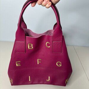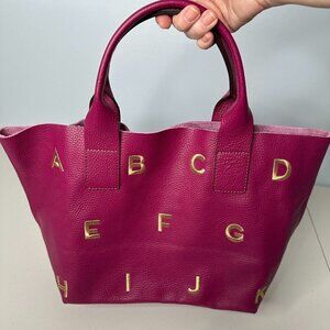 NUR DONATELLA LUCCHI Pink Leather Tote Bag Embroidered Alphabet Letters
